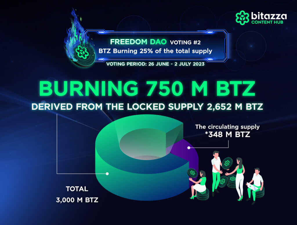 📝The burning of 750 million BTZ is a significant proportion, accounting for about 1 in 4 of the total supply of 3,000 million tokens. Burning such a large amount of BTZ may have implications for the scalability of the ecosystem in expanding the global market or enticing new partnerships to join the Bitazza ecosystem in the long term. However, it will not have any impact on the utility and circulation of benefits to BTZ holders within the ecosystem.